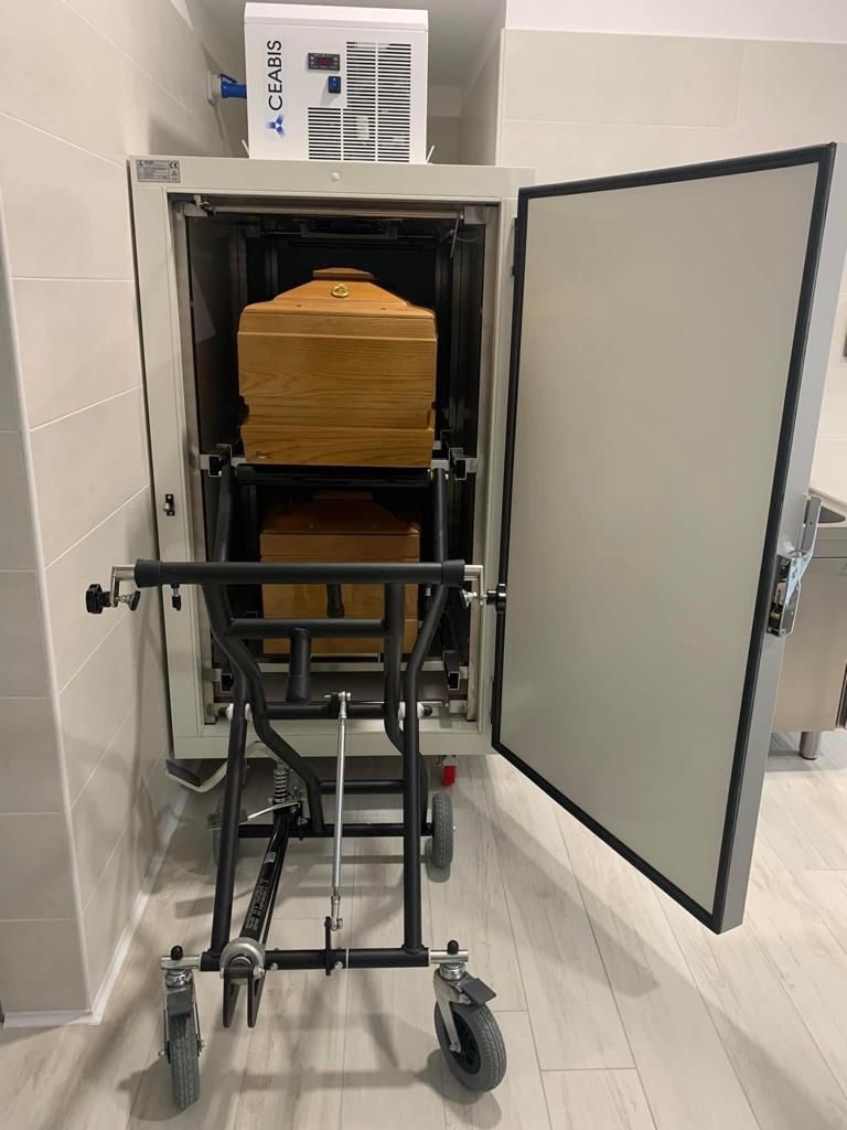 La struttura e' attrezzata anche di uno spazio riservato alla vestizione e preparazione della salma e di una modernissima cella frigorifera , che va incontro a eventuali esigenze d'attesa .