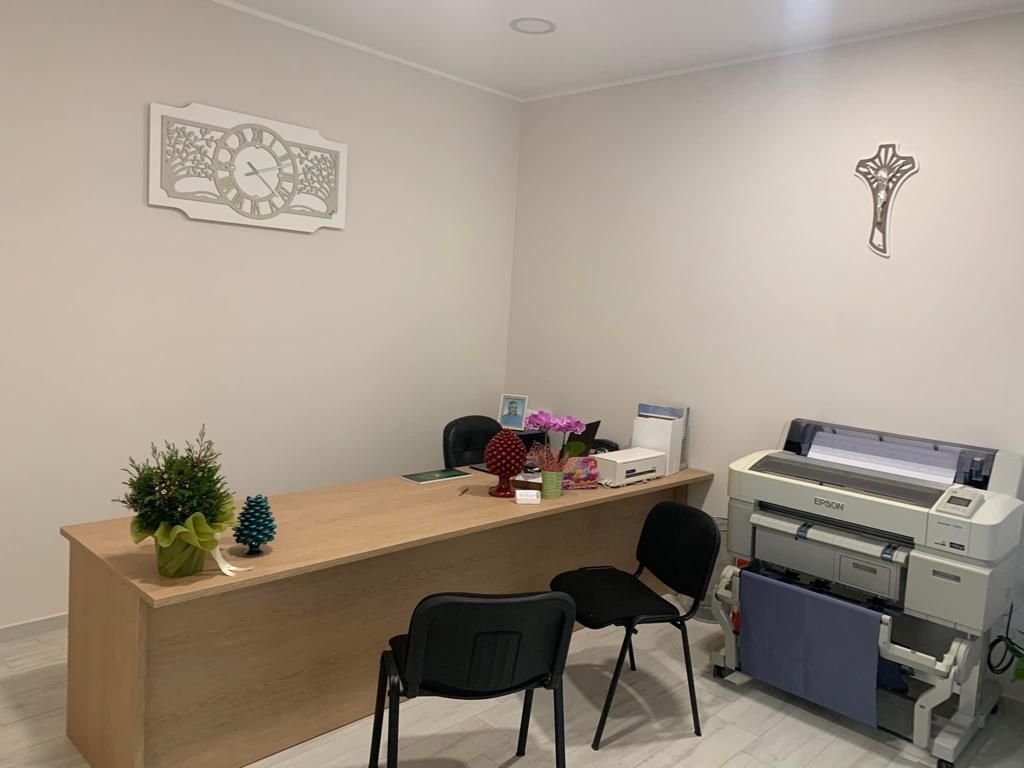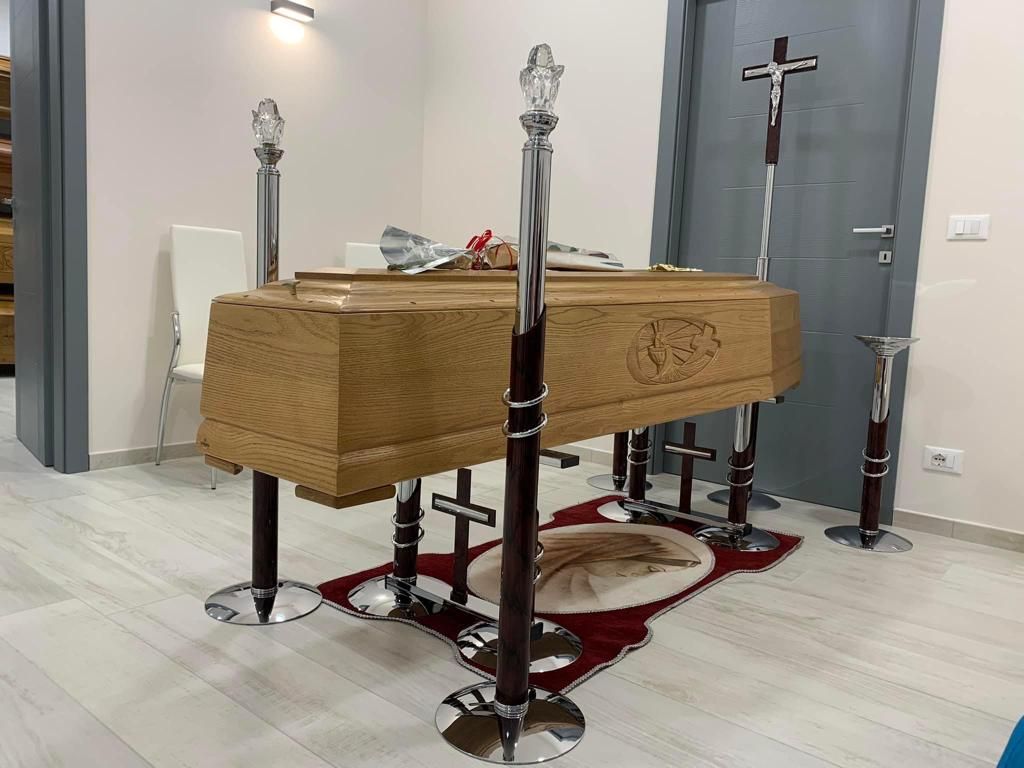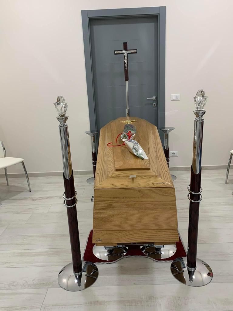 La sala espositiva permette di scegliere in un'ampia scelta di casse lignee , corredi funerari e urne cineree , realizzando in un unico luogo il concetto di Funeral home .