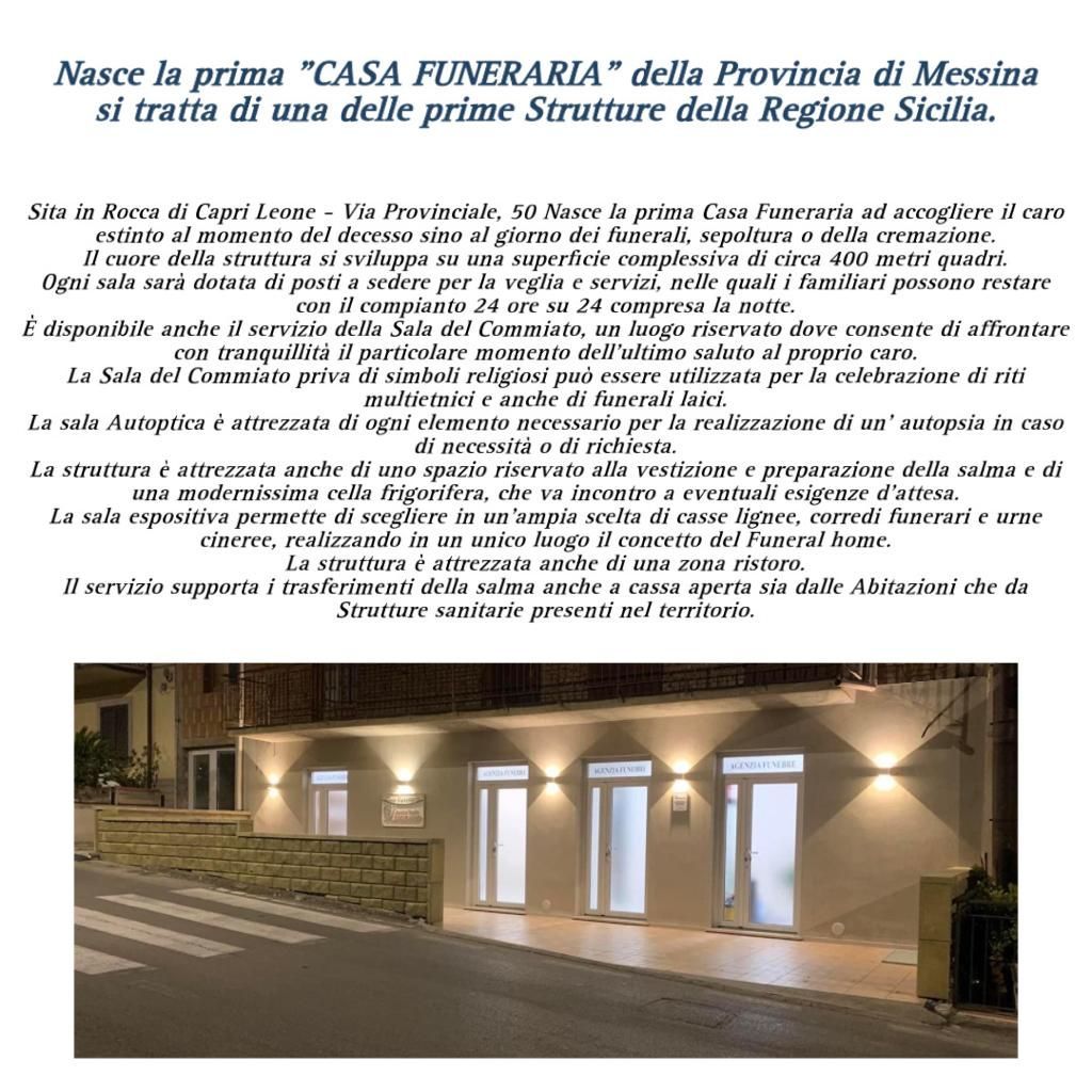 Sita in Rocca di Capri Leone - Via Provinciale , 50 Nasce la prima Casa Funeraria ad accogliere il caro estinto al momento del decesso sino al giorno dei funerali , sepoltura o della cremazione.